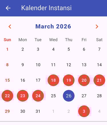 Event Nasional & Regional: Memuat jadwal libur nasional dan cuti bersama secara otomatis.